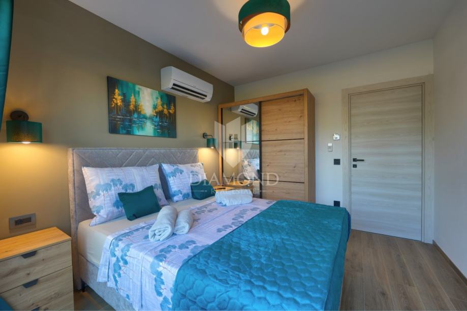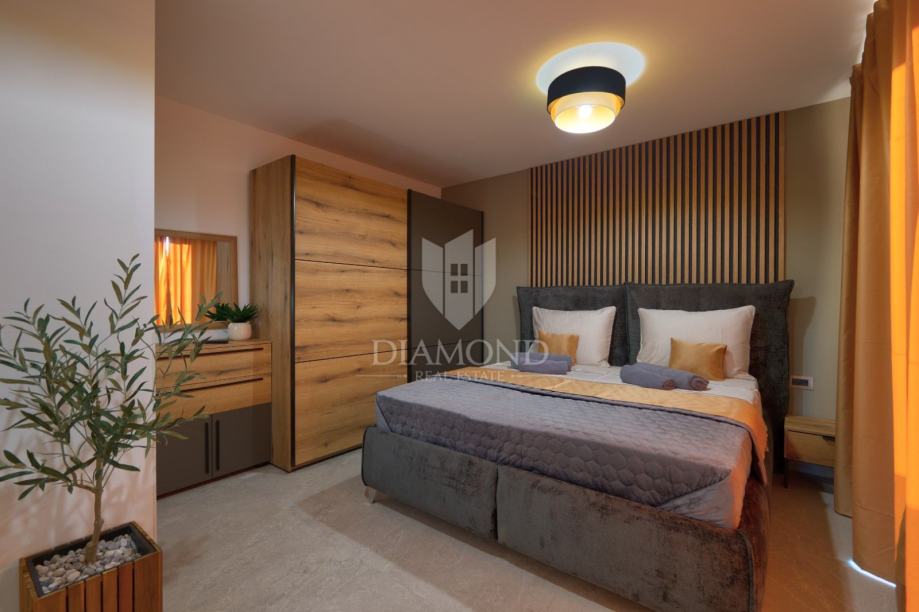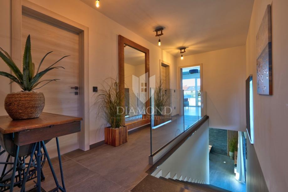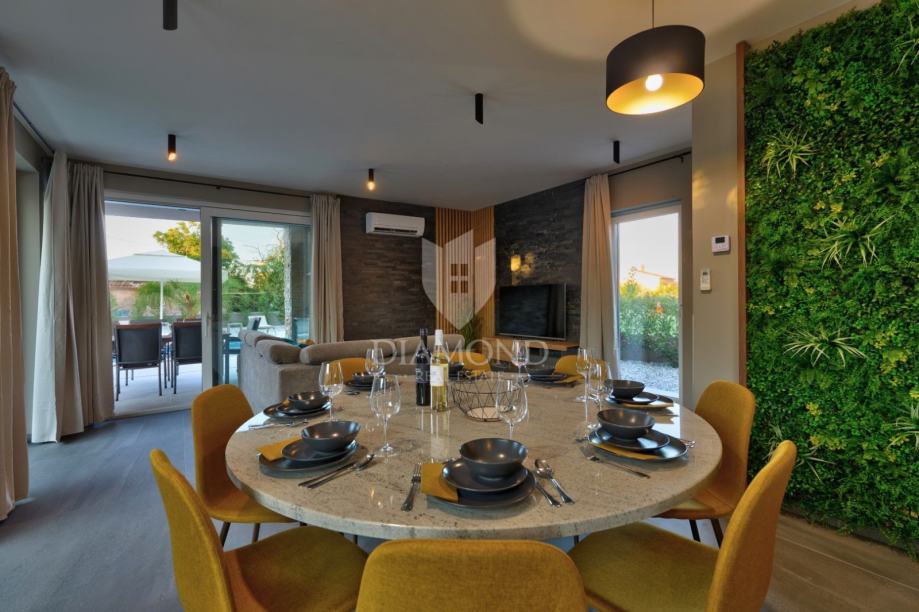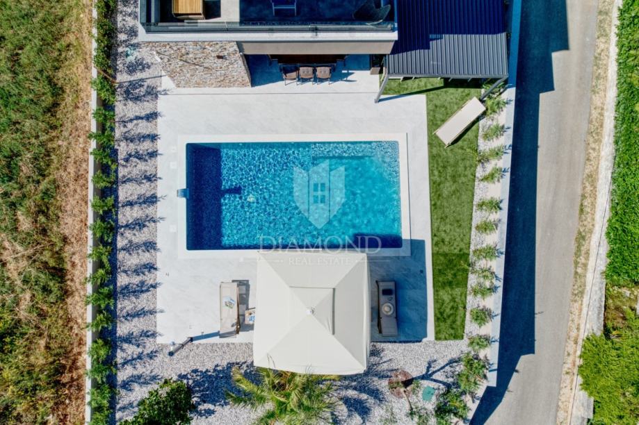 Prodaje se nova moderna vila izgrađena prema strogim standardima koja pruža savršen spoj luksuza i udobnosti. S četiri spavaće sobe s vlastitom kupaonicom podijeljene na dva kata i svijetlim dnevnim boravkom otvorenog koncepta koji uključuje potpuno opremljenu, elegantnu kuhinju s cijelim nizom modernih aparata. Nekretnina se također može pohvaliti velikim grijanim bazenom s velikom i namještenom terasom i vanjskom kuhinjom u blizini bazena. Infracrvena sauna i veliki jacuzzi nalaze se na drugom katu.