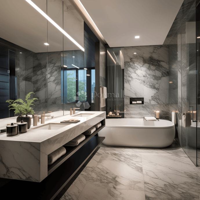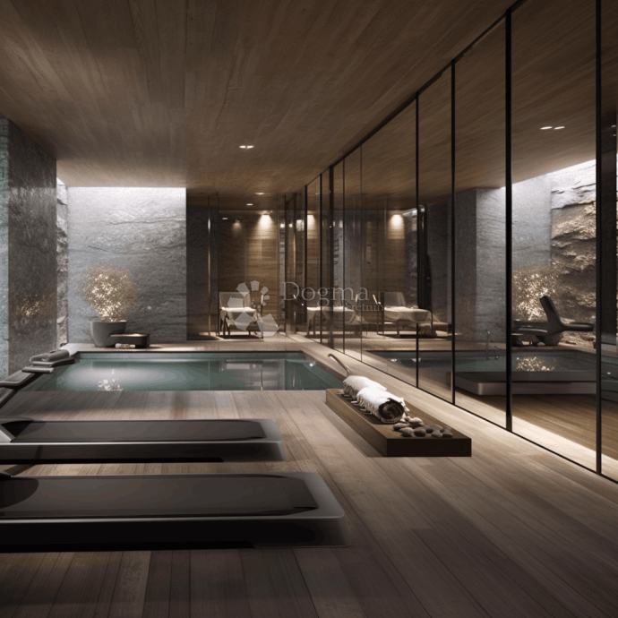 U predivnom okruženju, ova moderna villa prostire se na više od 350 m² na tri kata i smještena je na okućnici od 2.503 m². Ova luksuzna nekretnina savršena je za ispunjenje svih vaših želja, pružajući vam maksimalnu udobnost uz minimizirane troškove održavanja.