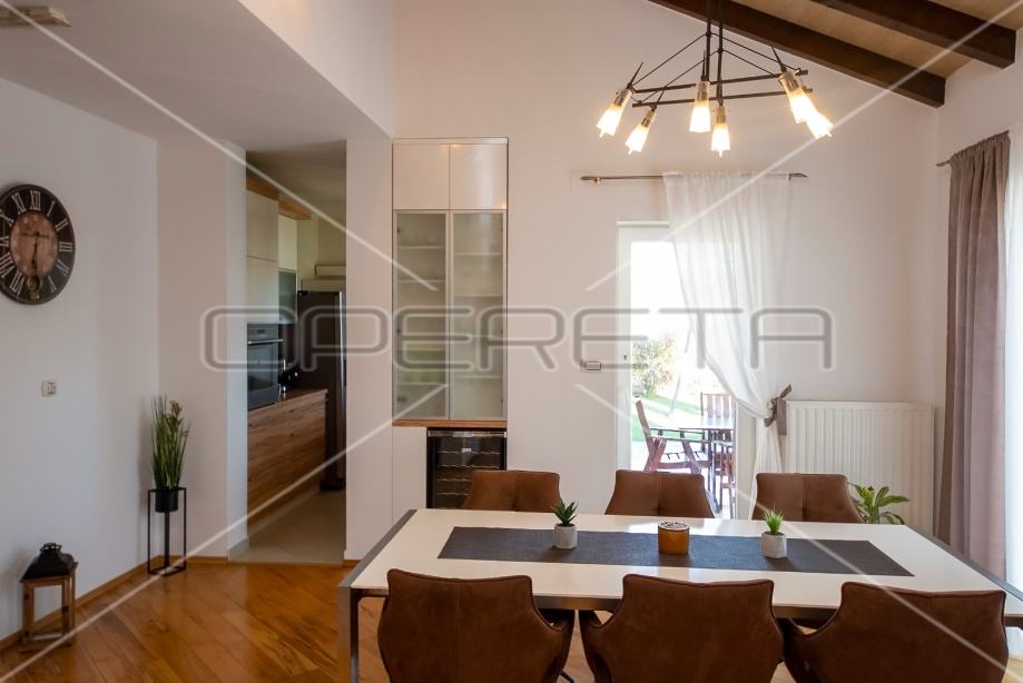 Kroz cijelu kuću je postavljeno centralno grijanje, a u prizemlju i podno. Na krovu su solarni paneli koji su izvrsno rješenje za uštedu energije, novca i očuvanja prirode.