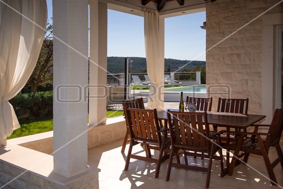 Luksuzna vila neto korisne površine 283 m2 na parceli površine 1310 m2 nalazi se na mirnoj i diskretnoj lokaciji kraj Šibenika.