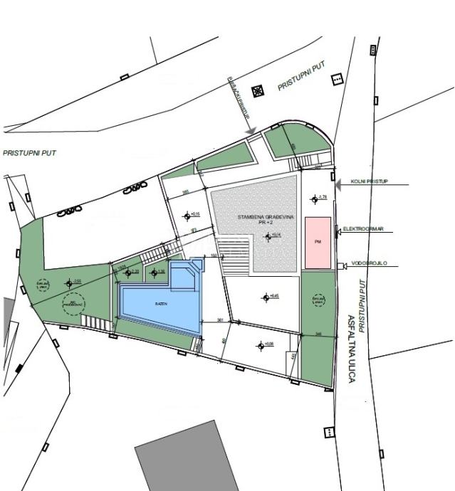 Poseban naglasak je na vanjskom prostoru – infinity bazen od 37 m² s preljevnim rubom (12 m), okružen sunčalištem i mediteranskim biljem, idealan je za uživanje u luksuzu i miru. Bazen je okružen zidovima ukupne površine 80 m², čime se osigurava potpuna privatnost.