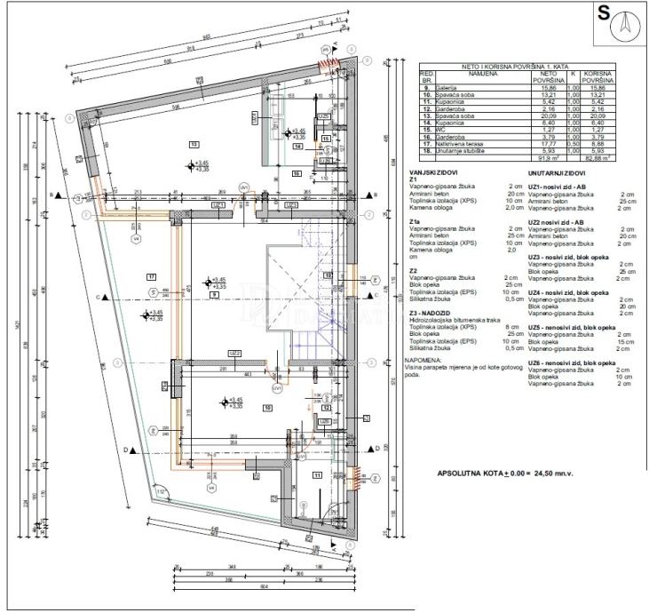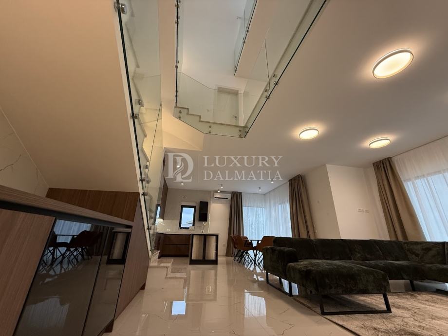 Vila se prostire na 350 m² bruto površine (200 m² neto stambenog prostora), a sastoji se od više prostranih spavaćih soba s vlastitim kupaonicama, otvorenog dnevnog boravka s kuhinjom i blagovaonicom, dodatnog prostora za opuštanje i prozračnih terasa s pogledom na more.