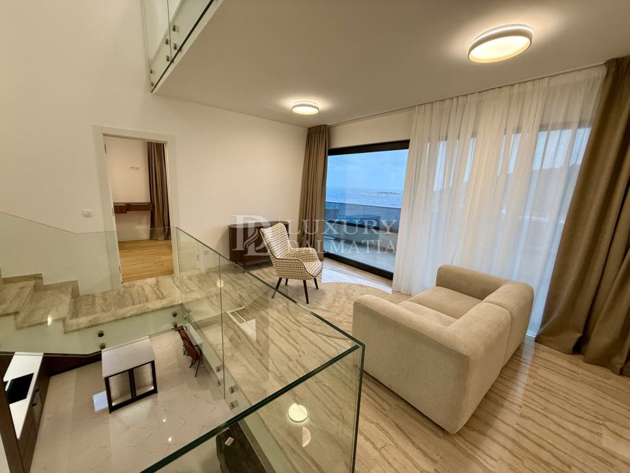 Na prodaju je ekskluzivna vila smještena u mirnom mjestu Ražanj, u blizini Rogoznice, svega 90 metara od mora. Ova moderno dizajnirana nekretnina pruža vrhunski komfor, privatnost i nezaboravan pogled na Jadransko more.