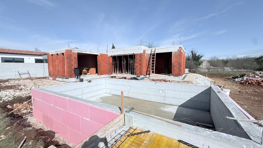 Moderna istarska villa s bazenom i wellnessom ukupne neto površine 185,14 m² na parceli površine 736 m². Izgradnja je započeta u 9/2025., a trenutno je dovršena kompletna armirano-betonska konstrukcija objekta, kao što je vidljivo na fotografijama.