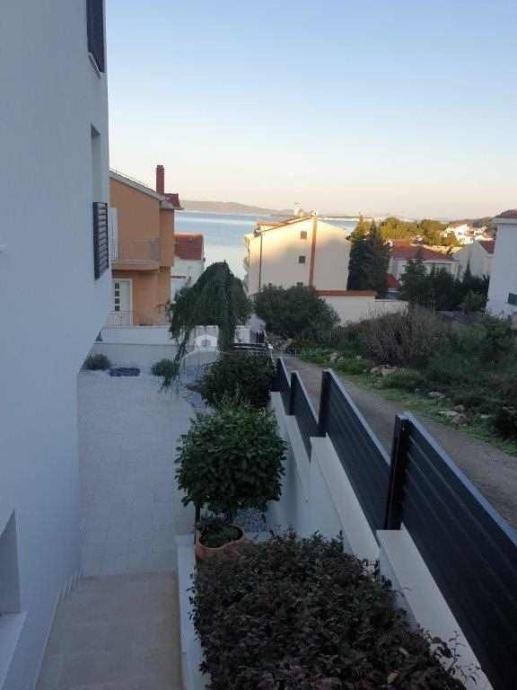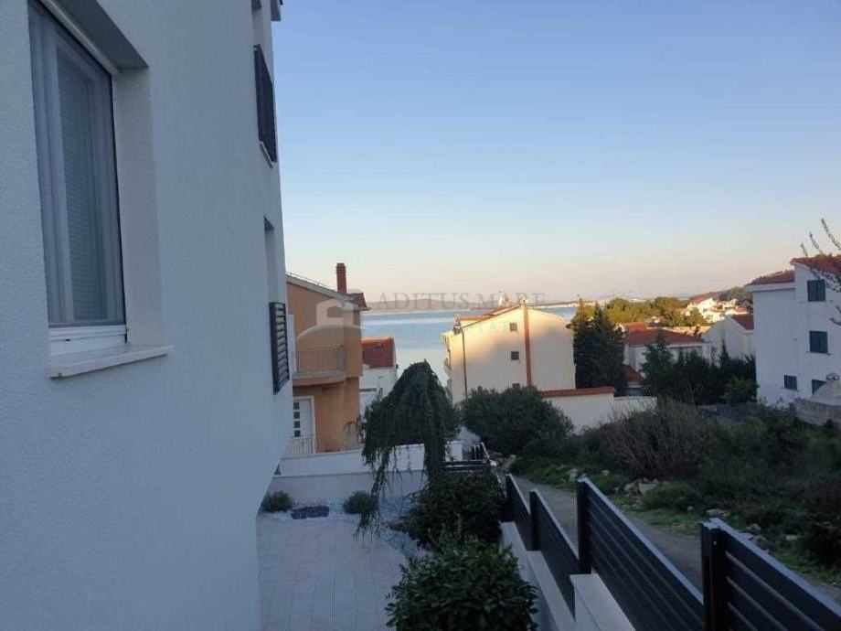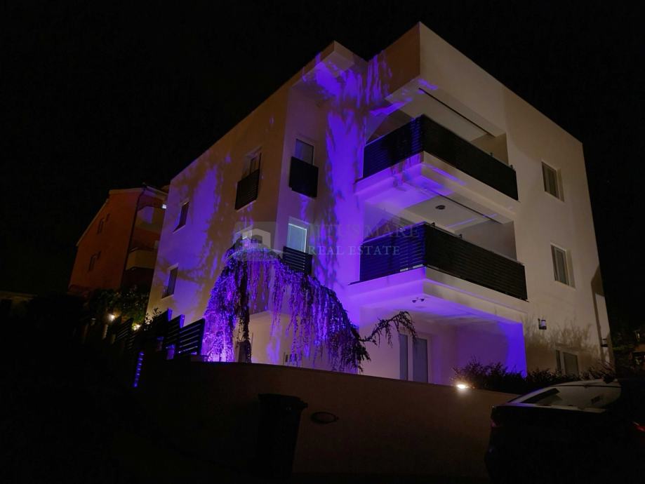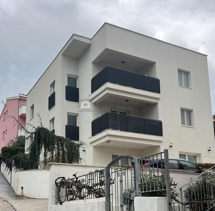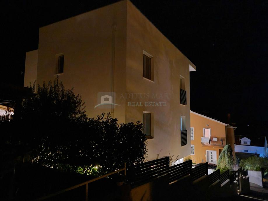 Na drugom katu nalazi se treći stan – moderno uređen trosoban stan koncipiran po open space principu. Dnevni prostor s kuhinjom i blagovaonicom otvoren je prema velikoj terasi, s koje se pruža spektakularan panoramski pogled na more, idealan za uživanje u zalascima sunca i mediteranskoj atmosferi.