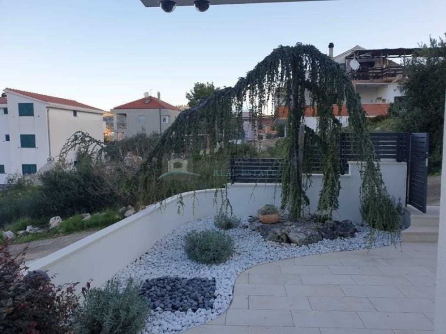 U prizemlju se nalazi prvi stan – prostrana i svijetla stambena jedinica koja se sastoji od dvije udobne spavaće sobe, moderne kupaonice te otvorenog dnevnog boravka s kuhinjom i blagovaonicom. Iz dnevnog prostora izlazi se na veliku terasu okruženu zelenilom, koja nudi privatnost i savršen kutak za jutarnju kavu ili večernji odmor.
