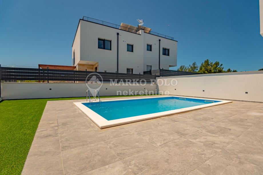 Otkrijte jedinstvenu priliku za kupnju novogradnje u Vodicama – luksuzne vile SIDRO i MASLINA, smještene na rubnom dijelu mirnog naselja, udaljene svega 1300 m od plaže i 1100 m od centra grada.