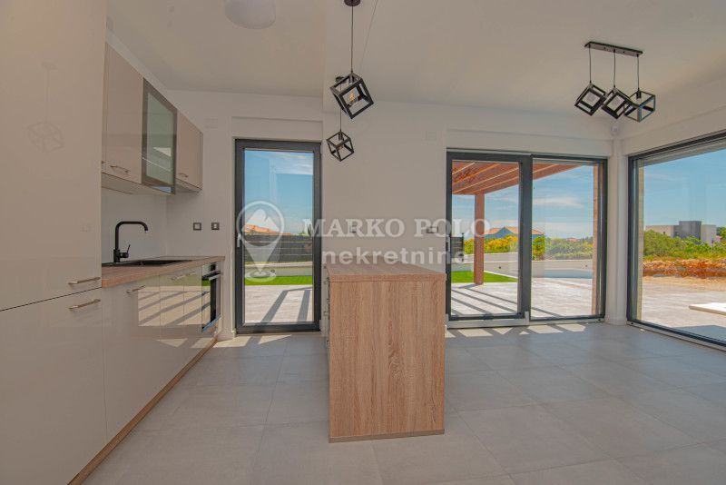• Prizemlje: Kuhinja s otokom izrađena po mjeri, blagovaonica, dnevni boravak, predsoblje, spremište, gostinjski WC.