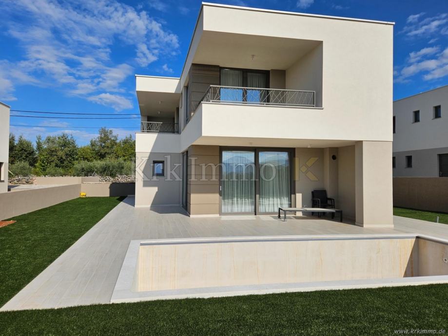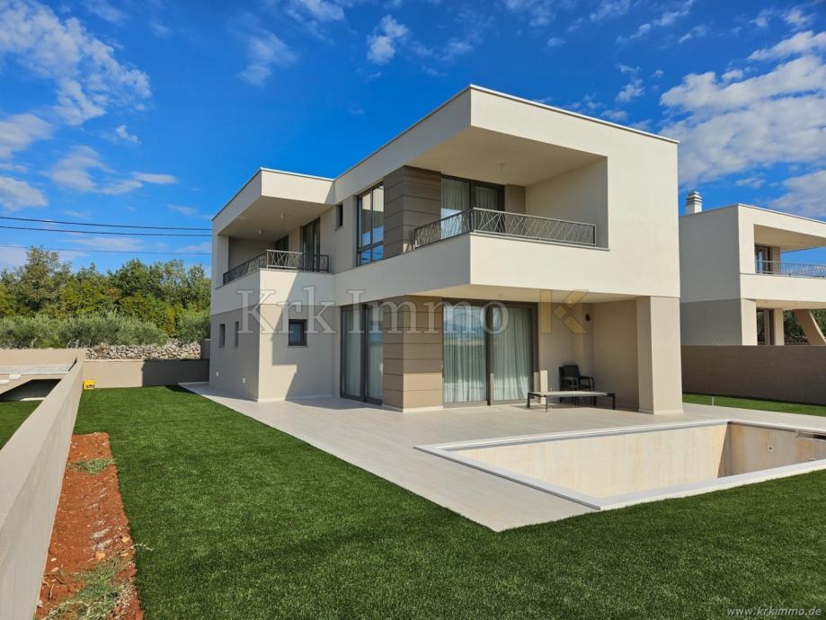Novogradnja Krk. Samostojeća villa s bazenom na mirnoj lokaciji
