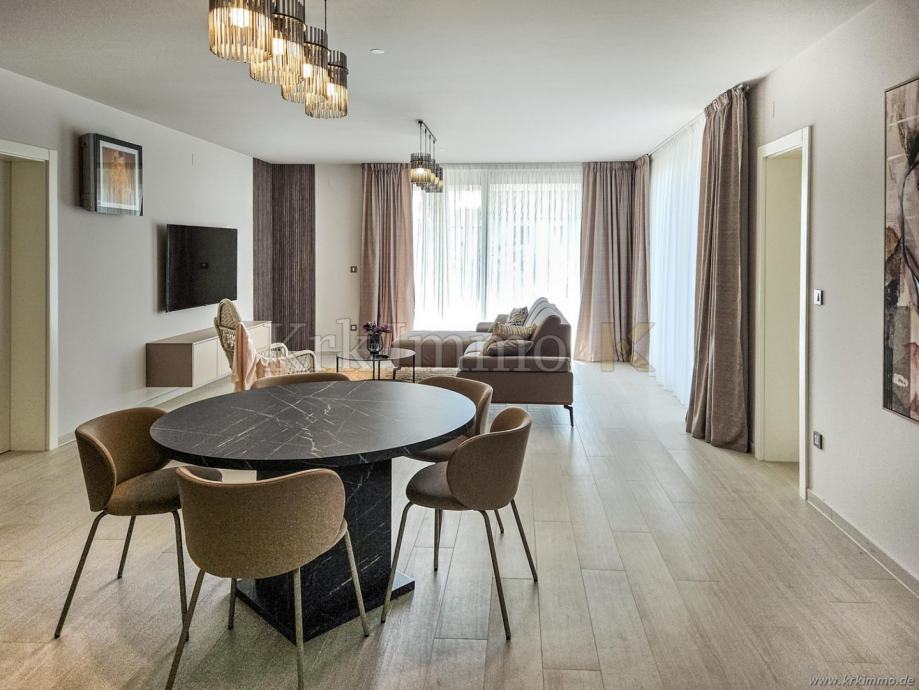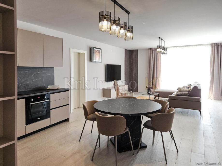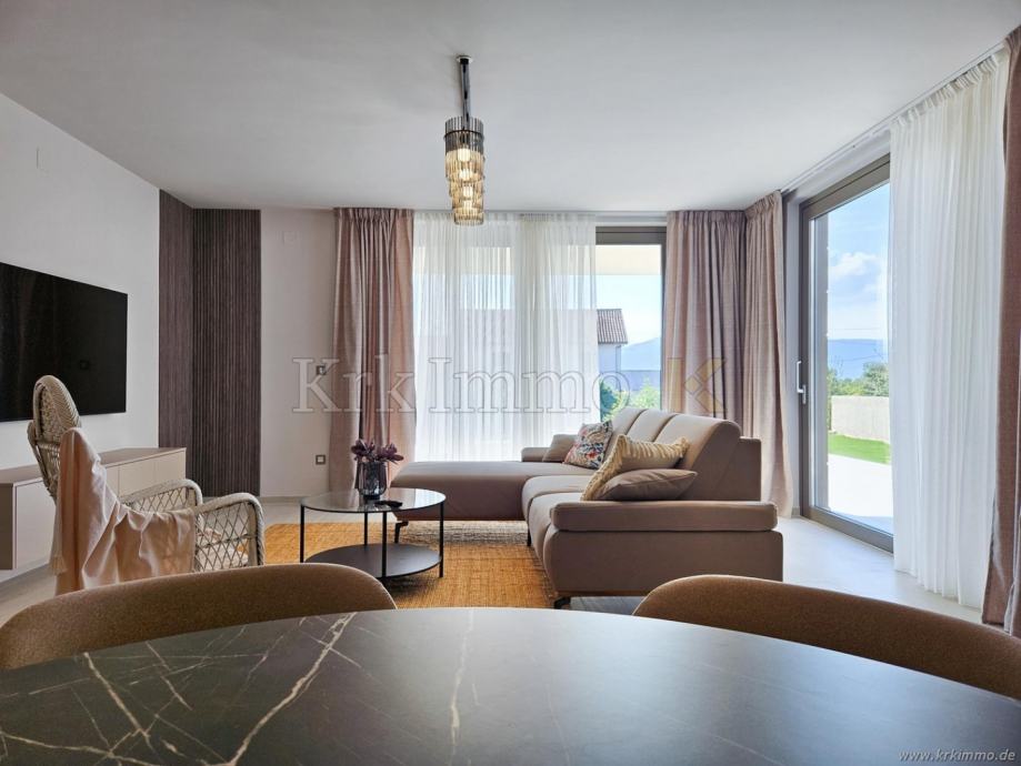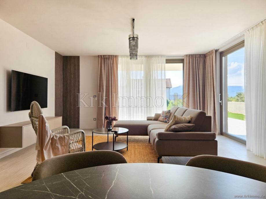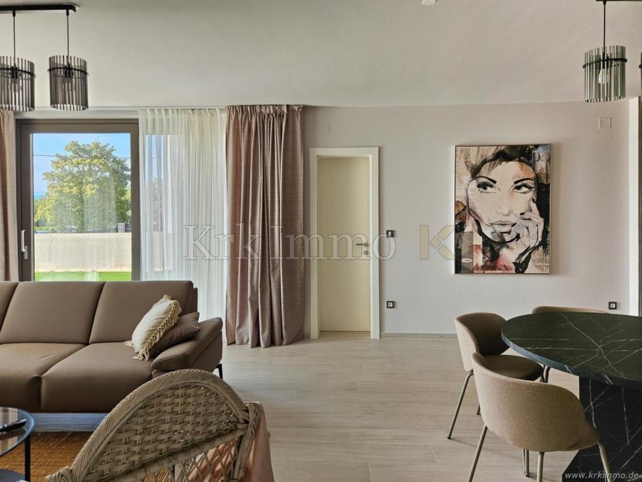 Na prodaju je nova, luksuzna samostojeća villa u okolici grada Krka na otoku Krku. Villa se nalazi na mirnoj lokaciji u blizini mora te se prostire na okućnici od 426 m2. Ukupna površina vile iznosi 165 m2, a sastoji se od prizemlja i prvog kata.