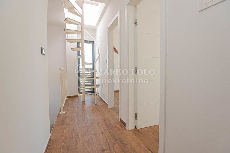 • Prizemlje: Kuhinja s otokom izrađena po mjeri, blagovaonica, dnevni boravak, predsoblje, spremište, gostinjski WC.