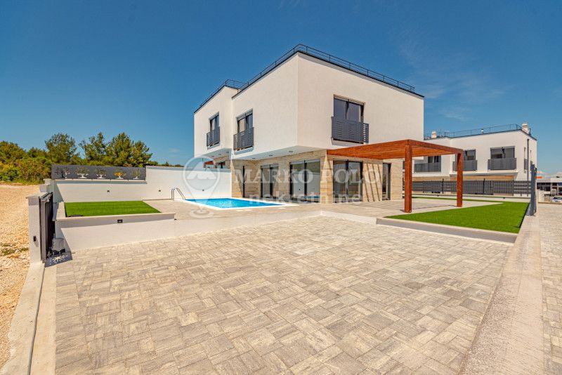 Otkrijte jedinstvenu priliku za kupnju novogradnje u Vodicama – luksuzne vile SIDRO i MASLINA, smještene na rubnom dijelu mirnog naselja, udaljene svega 1300 m od plaže i 1100 m od centra grada.