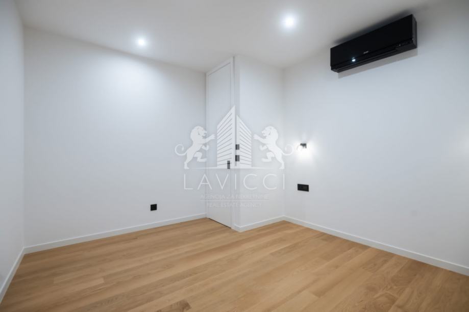 Interijer je pažljivo dizajniran kako bi pružio maksimalnu udobnost i funkcionalnost. Apartman dolazi djelomično namješten, uključujući potpuno opremljenu kuhinju s Bosch aparatima, kazetnom tendom na loggi – spremno za useljenje ili najam bez dodatnih ulaganja. U dnevnom dijelu i spavaćoj sobi postavljen je višeslojni prvoklasni parket. Kupaonica je opremljena porculanskom keramikom velikog formata, s minimalnim fugama za čisti, luksuzan izgled. Sanitarije LAUFEN i armature HANSGROHE osiguravaju visoku razinu dizajna i funkcionalnosti, kao i monolitni vodokotlić s automatskom LED rasvjetom na senzor pokreta.