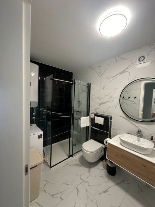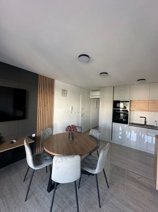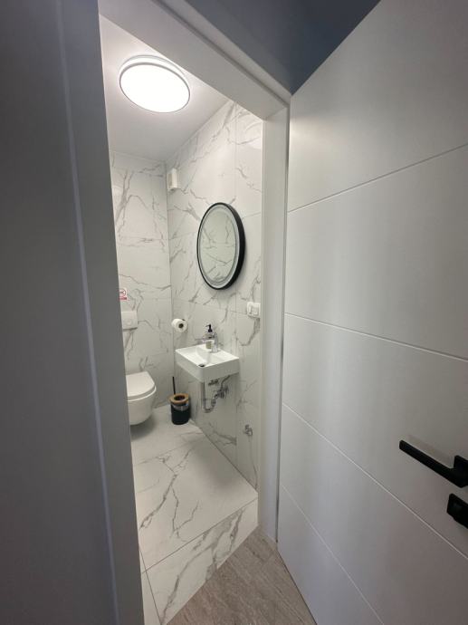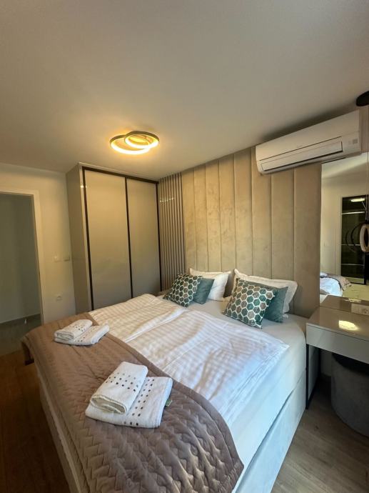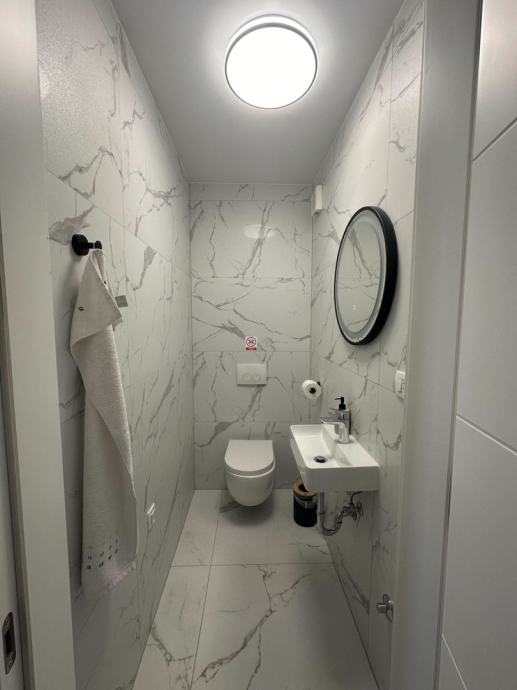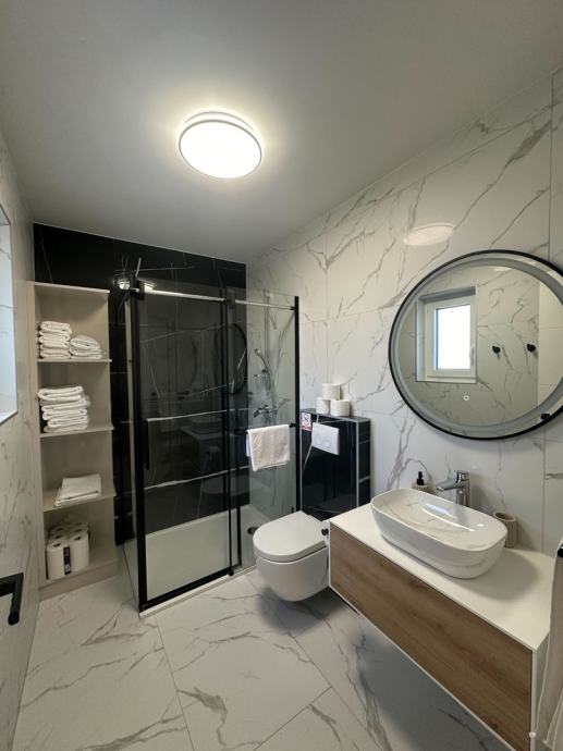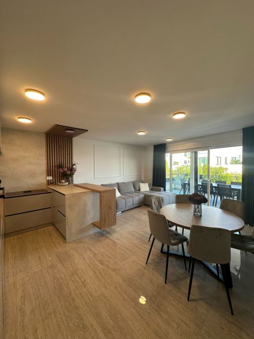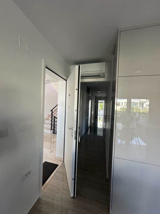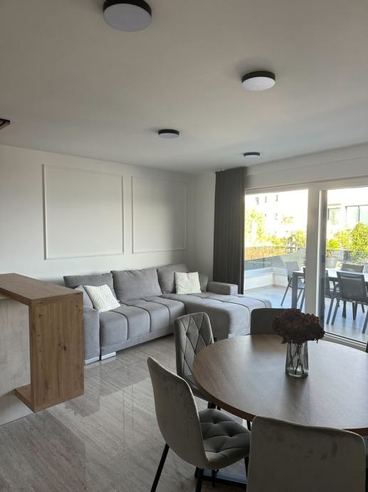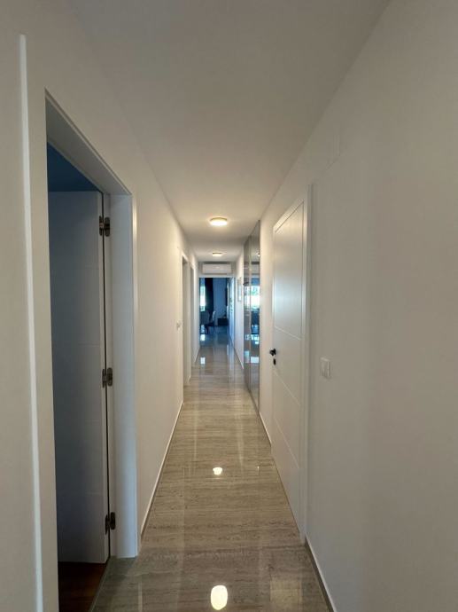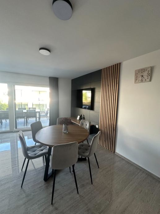 Na predivnom otoku Krku, u mjestu Malinska, nudimo vam luksuzan apartman smješten na prvom katu moderne zgrade. Ovaj prostrani stan površine 88,42 m² sastoji se od elegantnog dnevnog boravka s kuhinjom i blagovaonom, tri udobne spavaće sobe, tri kupaonice, zasebnog WC-a te prostranog hodnika. Dodatnu udobnost pruža natkrivena terasa površine 15,40 m², idealna za opuštanje uz jutarnju kavu ili večernje zalaske sunca. Stan ima vlastitu okućnicu (66,45 m²) s bazenom površine 12,88 m², savršenim za osvježenje tijekom vrućih ljetnih dana. Na raspolaganju je i parkirno mjesto, površine 12,50 m². Nekretnina je opremljena najmodernijim sustavima grijanja, uključujući podno grijanje i toplinsku pumpu za bazen. Klimatizacija, električne rolete i pogled na more dodatno doprinose luksuznom doživljaju boravka u ovom stanu. Udaljenost od mora je svega 500 metara, što omogućava brz i lagan pristup plažama i obalnim šetnicama. Prilika!