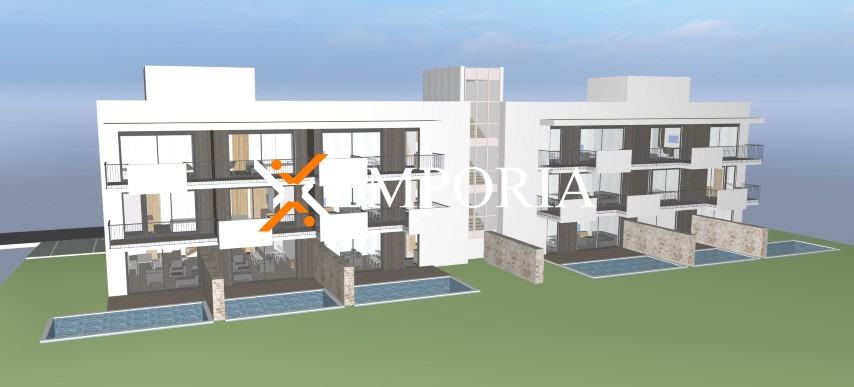 Također, apartmanu pripadaju vrt od 91,15 m2 s bazenom od 23,43 m2 te dva parkirališna mjesta.