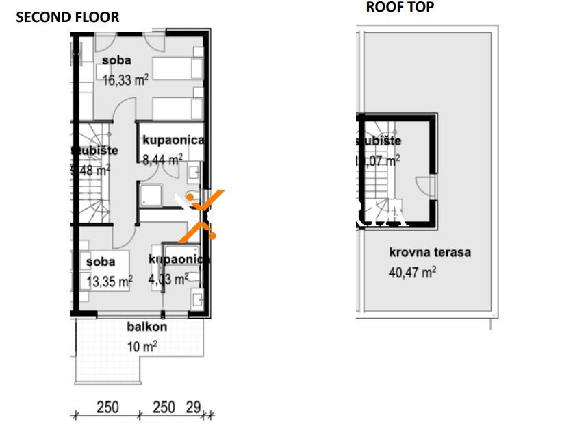 Nadalje, unutarnje stepenice vode na krovnu terasu površine 40,47 m2