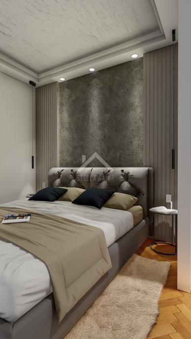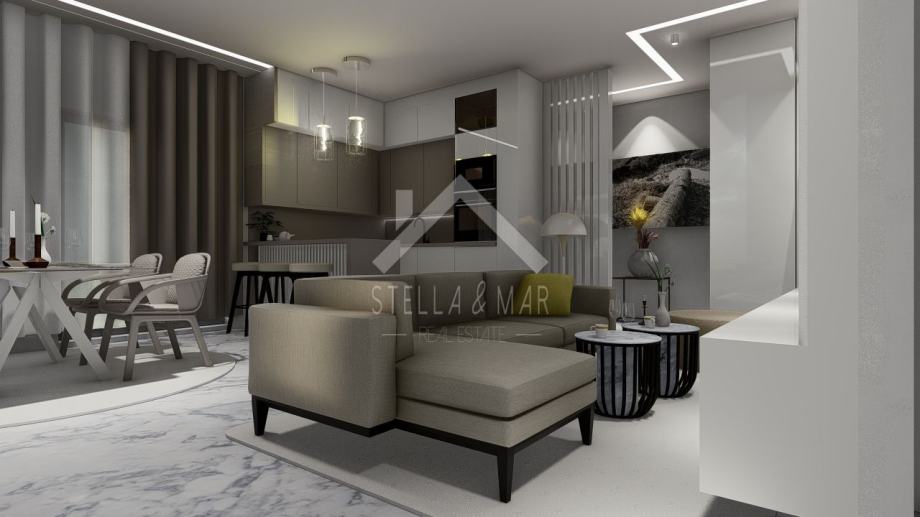 Površine je 113,35 m2 i raspolaže sa dnevnim boravkom, kuhinjom, blagovaonom, tri spavaće sobe , od kojih jedna ima vlastitu terasu sa pogledom na more , dvije kupaone i krovnom terasom sa koje se pruža nesmetan pogled na more.