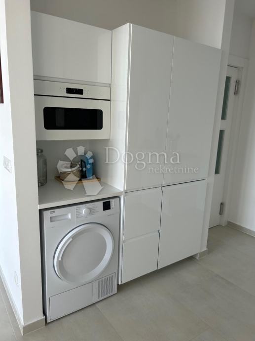 Stan je kompletno namješten za ugodan život i opremljen svim potrebnim kućanskim aparatima i bijelom tehnikom. Grijanje je podno u kupaonici, dok je ostatak stana na toplinsku pumpu s termostatima u svakoj sobi.