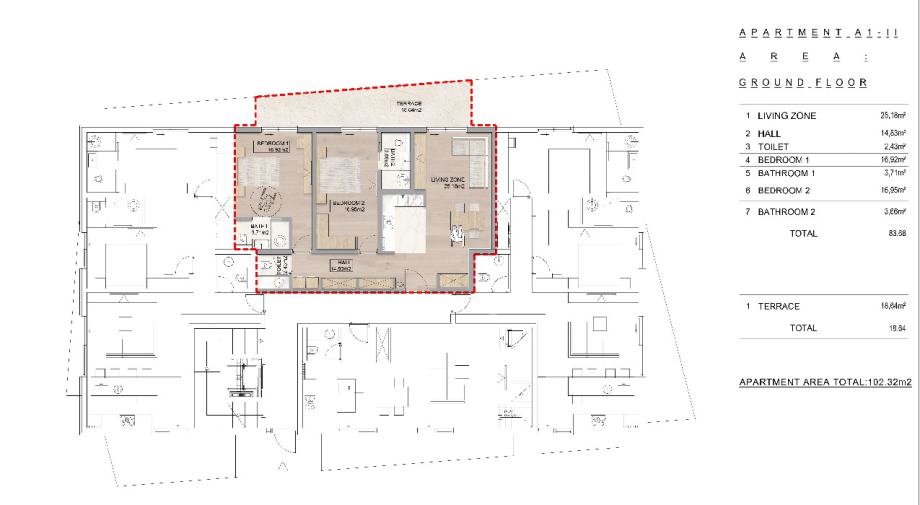 Posredujemo u prodaji stana A2-II u prizemlju 93 m2 – La Ginestra Residence, Vodice