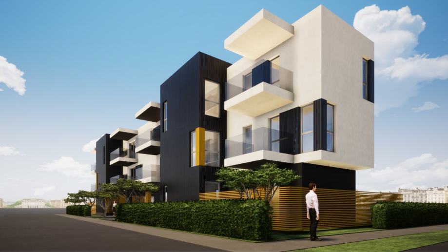 Zgrada ima jedinstven projekt koji pruža široki izbor rasporeda prostorija. U novogradnji se nalazi ukupno 6 stanova četiri četverosobna površine