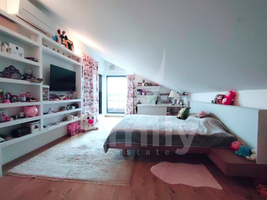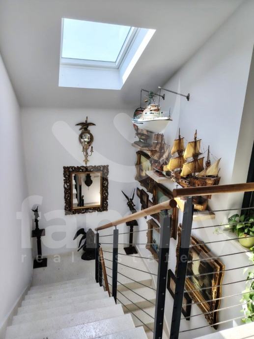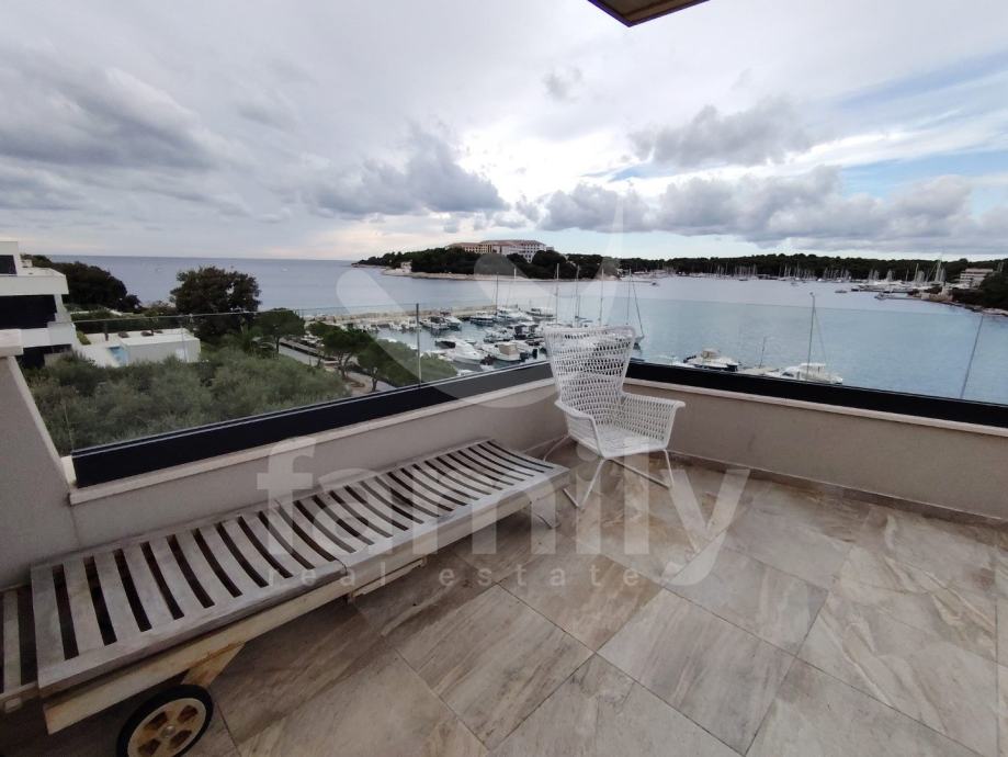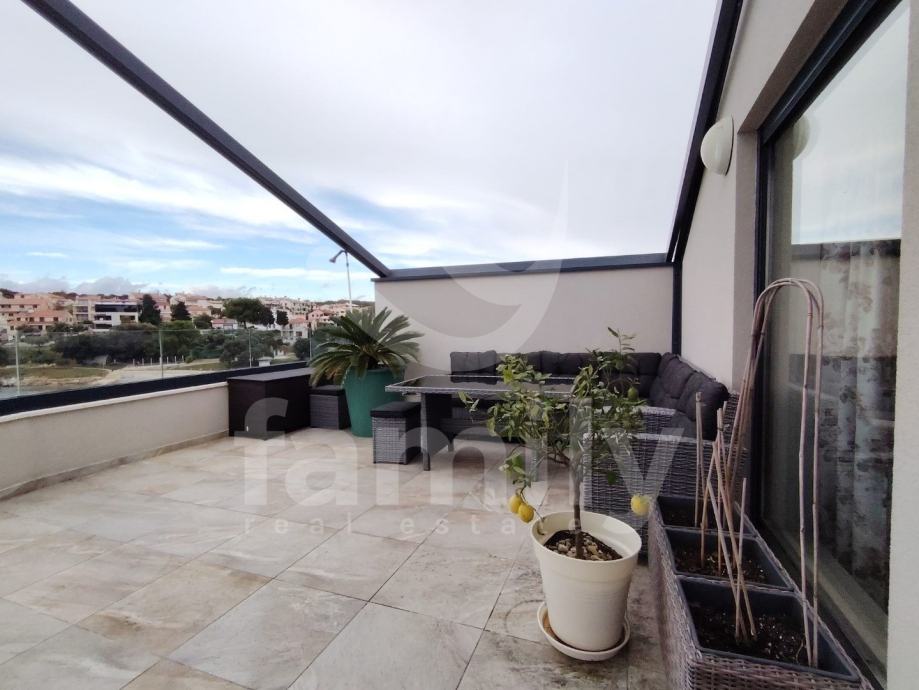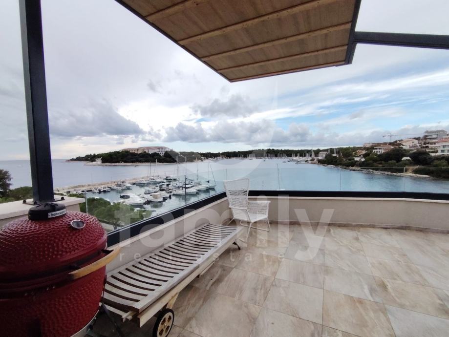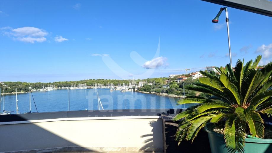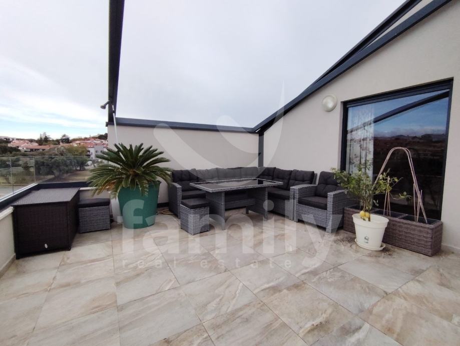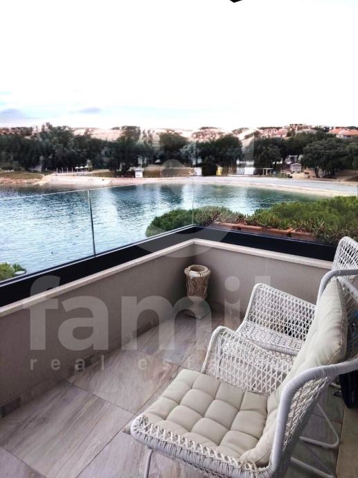 Upravo u Općini Medulin točnije u Pješčanoj Uvali se nalazi visokokvalitetan penthouse sveukupne površine od 303 m2. Ovaj luksuz se proteže na dvije etaže potpune privatnosti. Ulazom u hodnik nekretnine koji vodi direktno u otvoreni dnevni boravak i kuhinju sa blagovaonm te izlazom na prostranu terasu sa pogledom na more. Navedene prostorije su opremljene sa visokokvalitetnim modernim pločicama, u kuhinji se nalazi keramička radna ploča, Bosch aparati te se ulazi u ugodno i dobro osmišljen dnevni boravak. Dvije komforne spavaće sobe od kojih je jedna soba sa garderoberom, jacuzzi u kupatilu dok je drugo kupatilo opremljeno tušem, s tim da sve prostorije imaju podno grijanje i izlaz na terase sa pogledom na more. U prizemlju je također ostava, vešeraj. Ograde na terasi od sigurnosnog lameliranog stakla, kao i video parlafon sa video nadzorom, ulazna protuprovalna i protupožarna vrata.