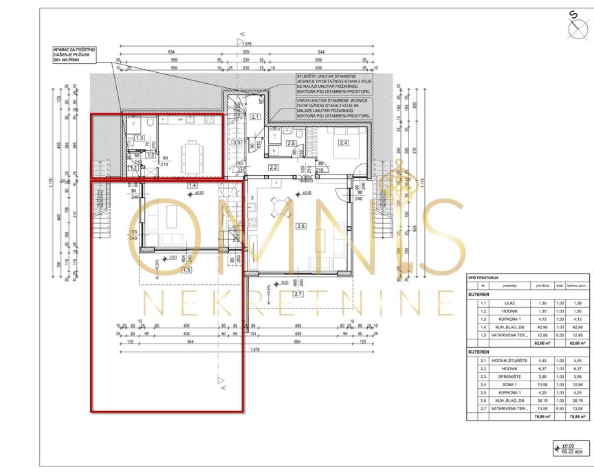Stan S2 proteže se na dvije etaže – prizemlje i suteren – ukupne površine 120 m2.