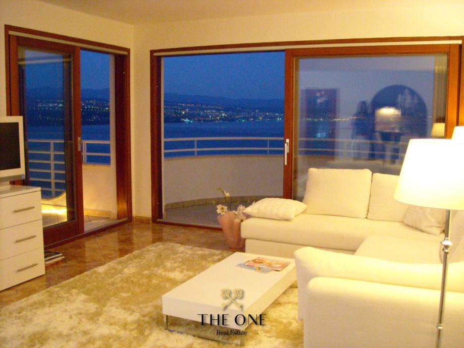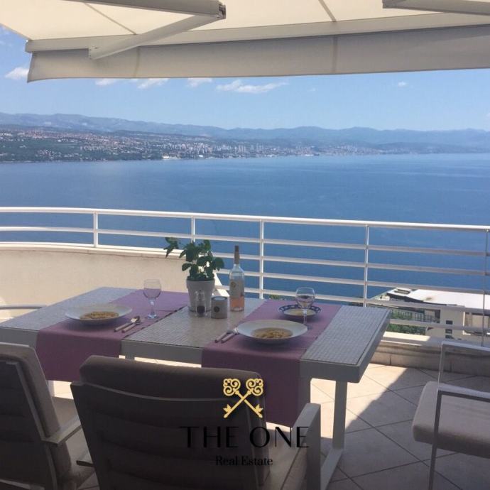 Dvoetažni stan površine 202 m2 je smješten na zadnjem katu ville te uz iznimno funkcionalni raspored interijera, stan ima prostrane terase ukupne površine 79 m2 s kojih se pruža jedinstveni pogled na Opatijsku rivijeru.
