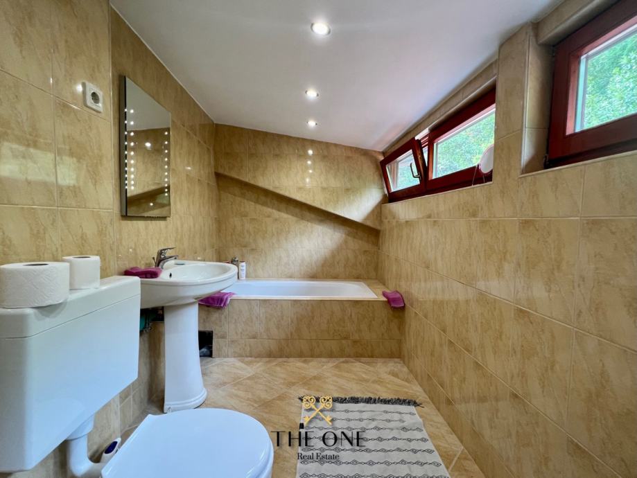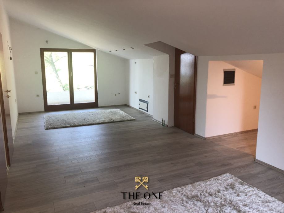 Na gornjoj etaži se nalaze dvije spavaće sobe, kupaonica, veliko predsoblje koje se može prenamijeniti u dnevnu sobu, te terasa.