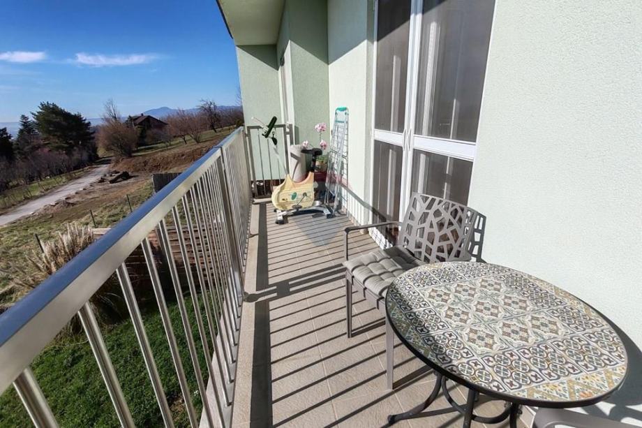 Dodatne pogodnosti uključuju dva nenatkrivena parkirna mjesta, vrt sa vrtnom kućicom i prekrasan pogled na cijeli Zagreb. Lokacija je idealna za obitelji ili pojedince koji traže mir, a istovremeno žele biti blizu svih urbanih sadržaja. Stan se nalazi u neposrednoj blizini autobusne stanice (5 minuta), te glavnih cesta omogućujući jednostavan pristup širem dijelu grada. 2400 m od kuće na Ulici Bologne nalazi se željeznička stanica, vlakom se dolazi do Glavnog kolodvora za 20-tak minuta.