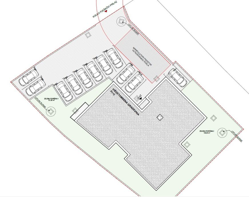 Ovaj prostrani luksuzni dvosobni stan smješten je u prizemlju moderne zgrade koja se sastoji od ukupno 6 stanova, raspoređenih na tri etaže (prizemlje, prvi i drugi kat). Svaka etaža sadrži po 2 stambene jedinice, a zgrada se gradi prema najnovijim standardima gradnje, s planiranim završetkom u četvrtom mjesecu 2026. godine. Investitor je pravna osoba, što znači da ste oslobođeni plaćanja poreza na promet nekretninama.