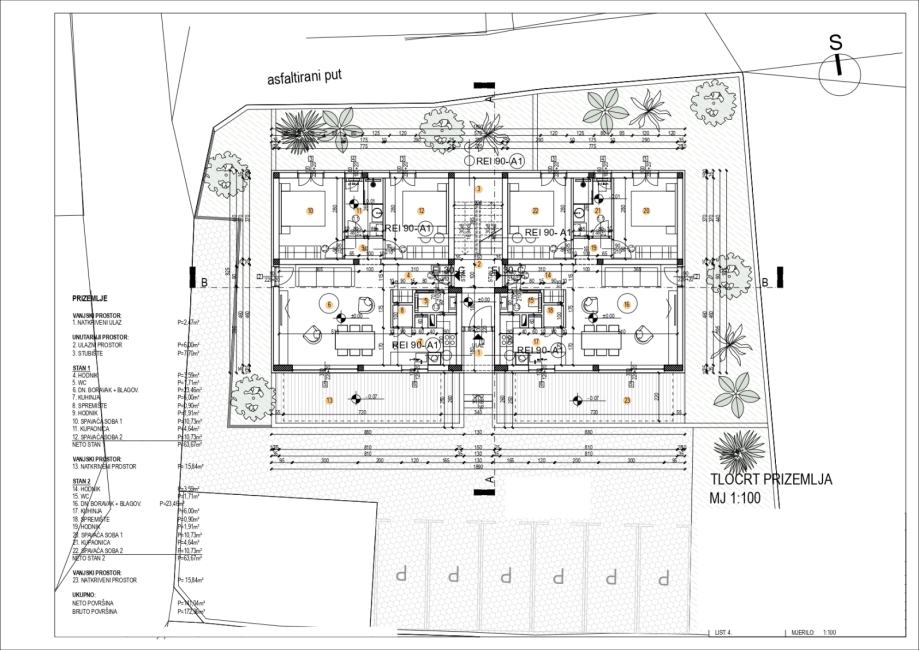 Dvosobni stan: 63,67 m² + terasa 7,92 m² + dvorište 6,85 m² + parking mjesto