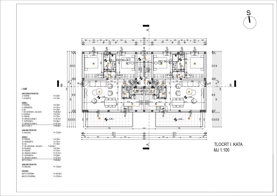 Dvosobni stan: 63,67 m² + terasa 7,92 m² + dvorište 7,85 m² + parking mjesto