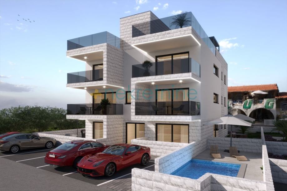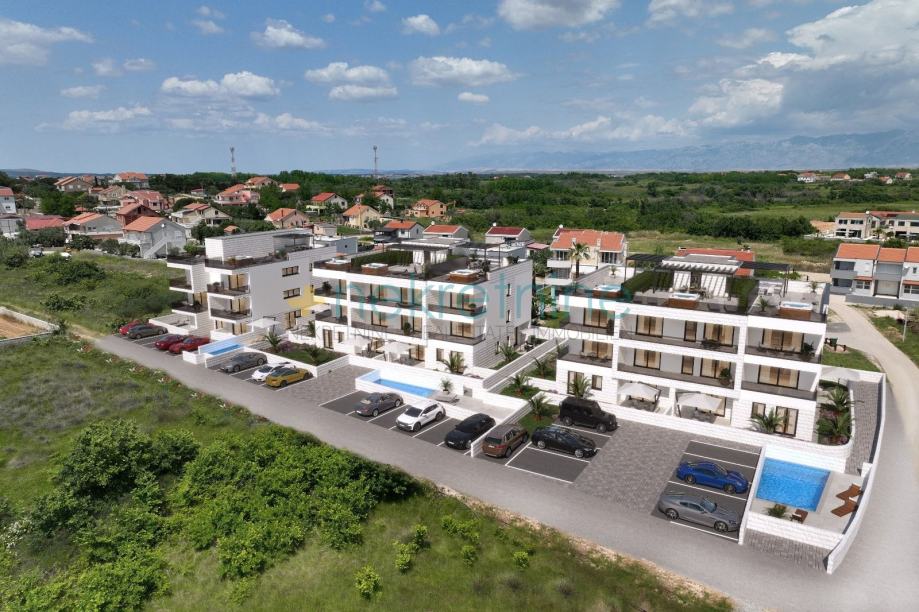 LUKSUZNA NOVOGRADNJA U PRIVLACI 70 METARA OD MORA - AKCIJA!!!U popularnom turističkom dalmatinskom naselju - Privlaka, pokraj Zadra, grade se 3 urbane Vile modernog dizajna s ukupno 26 stambenih jedinica na samo 70 metara od mora! Vile su smještene na parceli ukupne površine U samoj blizini se nalaze i brojne pješčane plaže i uvale po kojima je Privaka nadaleko poznata, a mjesto će vas također očarati svojim spektakularnim zalascima sunca te pogledom na more i okolne otoke i otočiće. Privlaka je zaista mjesto koje pruža sve za upotpunjen boravak i odmor, a isto tako zbog svog dobrog geografskog položaja njene pješčane plaže se u pogodne za kupaće već od Svibnja, a tokom ostatka godine idealno su i popularno okupljalište Kite surfera.Vila Estera - 10 stambenih jedinica - PENTHOUSE P8Penthouse P8 se nalazi na 2. katu zgrade te je bruto površine 183,96m2, dok njegova neto površina iznosi 103,78m2. Jugoistočne je orijentacije te ima očaravajući pogled na more.Sastoji se velikog otvorenog prostora kuhinje, blagavonice i dnevnog boravka (36,84m2m2) s kojeg imamo direktan izlaz na natkrivenu terasu (12,86m2) s koje se pruža predivan pogled na more! Uz, to tu su dvije spavaće sobe (13,77m2 i 10,37m2), hodnik (5,76m2) i kupatilo (4,29m2). Penthouse pripada i prostrana terasa površine čak 85m2 s koje se pruža pogled koji vas neće ostaviti ravnodušnim.Stanu pripada i jedno vanjsko parkirno mjesto te pristup zajedničkom vanjskom bazenu.Zgrada i stanovi se grade od izuzetno kvalitetnih i renomiranih materijala te će biti luksuzno opremljeni od čega valja izdvojiti :- Smart Inverter klima sustave grijanja i hlađenja- Podno grijanje kupaonica- Vrhunsku unutarnju stolariju sa punim štokovima modernog dizajna i linija- Modernu šestokomornu PVC vanjsku stolariju sa izo troslojnim staklima i Low-e premazom sa vanjskestrane renomiranih europskih proizvođača, vanjska stolarija je opremljena sa ALU roletama na elektropogon i integriranim moaricama- Vrhunska sanitarna oprema renomiranih EU proizvođača- Parket i keramika I klase- Priprema za smart instalaciju- Smart ključ-kartica za ulaz u zgradu- Video portafon- Punionica El.Vozila- Thermo fasada- Svi konstruktivni elementi su dimenzionirani i bit će izvedeni po najvišim standardima u potresnominžinjerstvu(9 seizmička zona).Kraj radova i useljenje su predviđeni za 12/2024!
