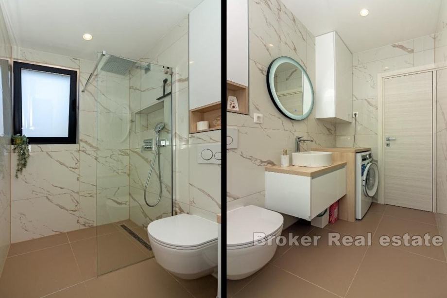 Penthouse se prostire preko 60 m2, a pripada mu i velika natkrivena terasa od 30 m2 s otvorenim pogledom na more . Sastoji se od hodnika, dvije spavaće sobe, dvije kupaonice, toaleta, kuhinje te dnevnog dijela koji se sastoji od blagovaonice i dnevnog boravka s izlazom na prostranu terasu.