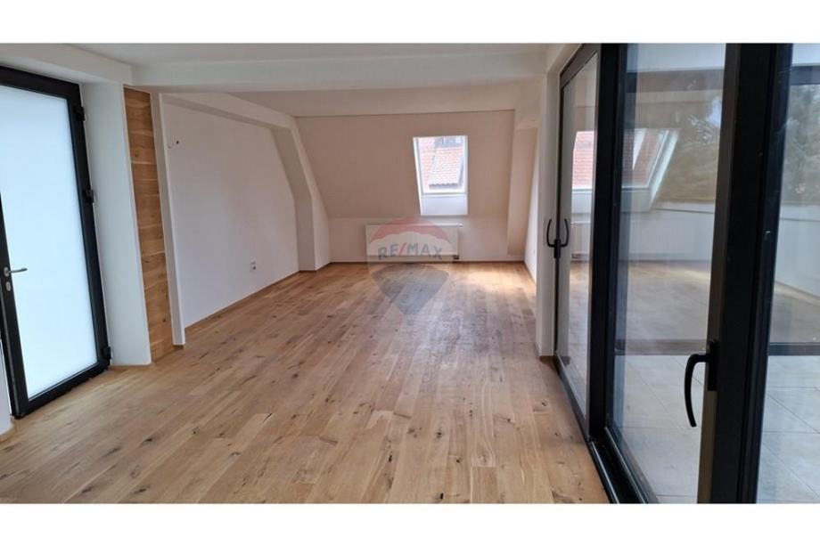 Ovaj prostrani stan prostire se na 135 kvadratnih metara i nalazi se na potkrovlju. Sastoji se od dvije spavaće sobe, dvije kupaonice i jedne zasebne toalete, savršeno raspoređene u ukupno tri sobe. Luksuzni prostor nudi udobnost te istovremeno zadržava šarm i karakteristike novogradnje.