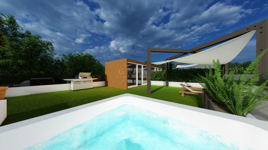 Na privatnoj krovnoj terasi na kojoj se nalazi sauna i jacuzzi zajedno s pergolom na umjetnoj travi, možete uživati u prekrasnom panoramskom pogledu prema moru, Novigradu, Umagu, Kašteliru, Taru. Veneciji i Alpama. Krovna terasa je idealno mjesto za uživanje u mirnom okruženju, sunčanju i opuštanju u sauni i jacuzziju.