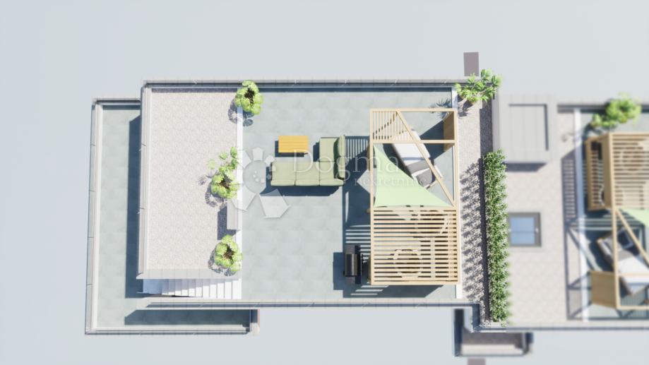 Penthouse na drugom katu zgrade s 119,86m2 stambene površine se sastoji od kuhinje s blagavonicom, dnevnog boravka, dvije kupaonice, tri spavaće sobe te velike terase površine 26,78m2 s koje se pruža očaravajući panoramski pogled te krovne terase s koje s pruža predivan pogled na sve strane svijeta.