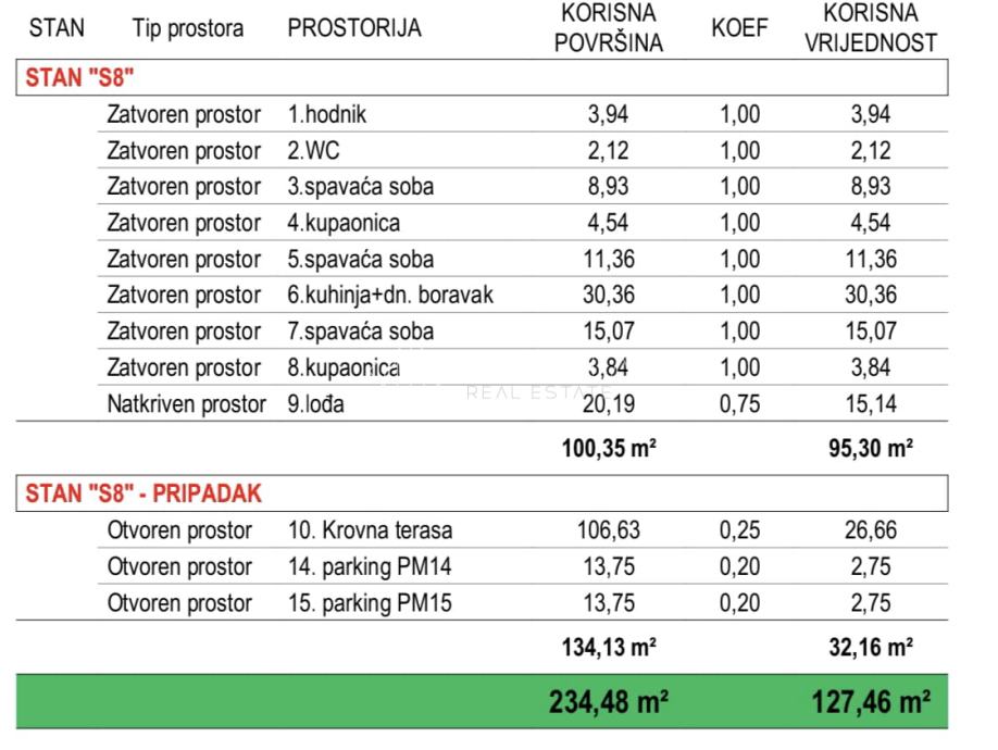 - Parkirno mjesto PM15: 13,75 m2 (koef. 0,20 – korisna vrijednost 2,75 m2)