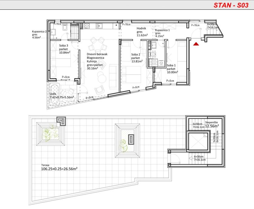 Stambena jedinica S03 (penthouse) – Zgrada 3
