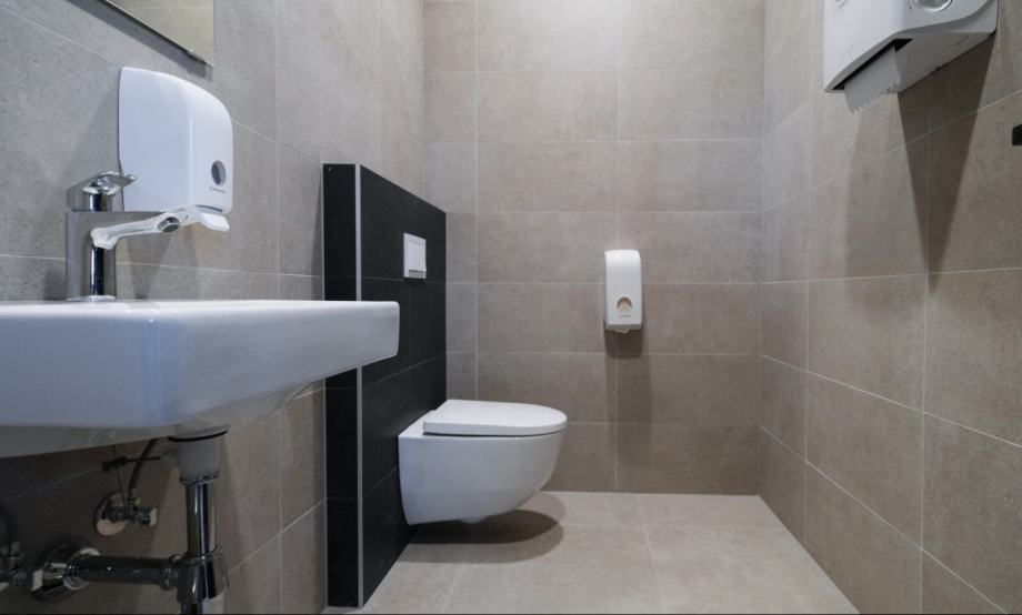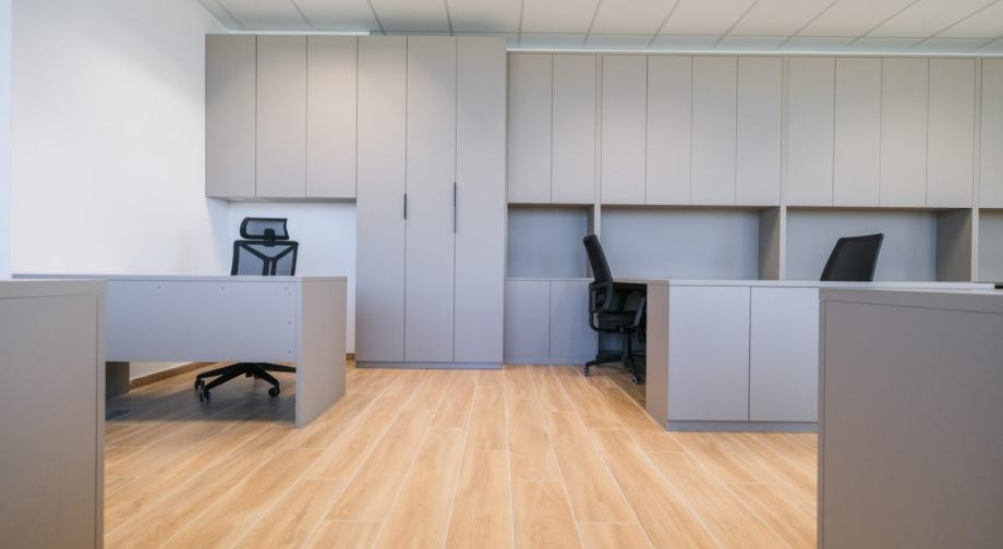 Kompletno je uređen: uredski namještaj na svim etažama, soba za sastanke, čajna kuhinja, m/ž toalet na svakom katu.