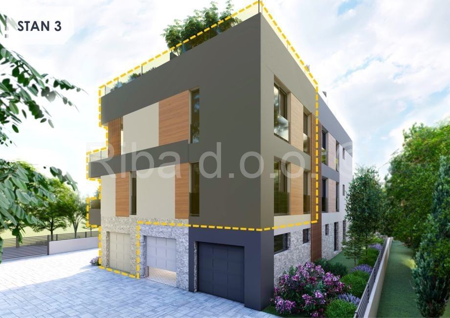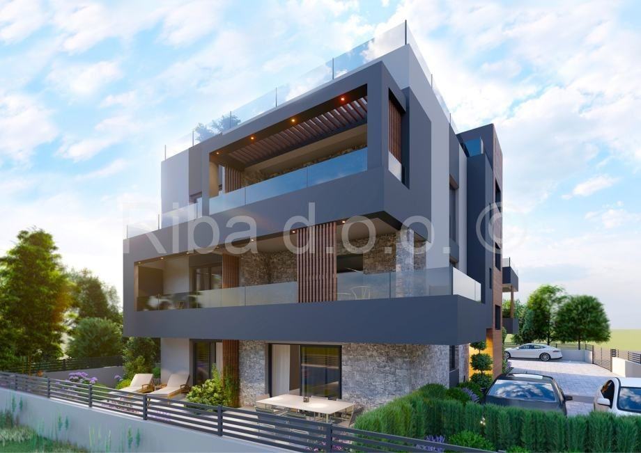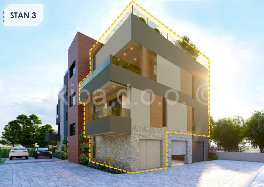 Ovaj stan se nalazi u prizemlju, ima veliku natkrivenu terasu i vrt. Sastoji se od dnevnog boravka, kuhinje i blagovaonice, tri spavaće sobe, kupaonice, toaleta i ostave.
