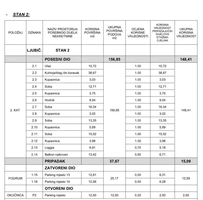 Stan 2 nalazi se na 2.katu zgrade i sastojat će se od ulaza, kuhinje sa dnevnim boravkom i blagavaonicom, 4 spavaće sobe, 5 kupaonica, loggia-e i natkrivenog balkona.
