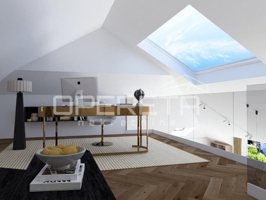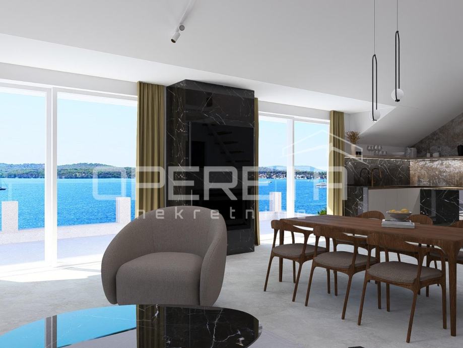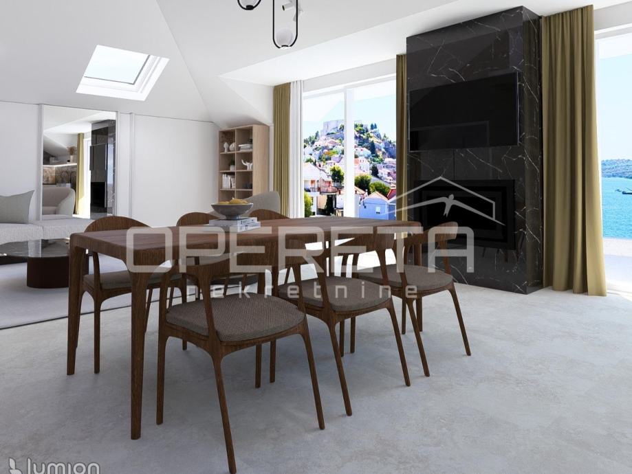 Prostrani dnevni boravak spojen s blagovaonicom i kuhinjom čini središte doma, uz terasu površine 20m2 s koje se pruža pogled na more, grad i slikoviti kanal sv. Ante.
