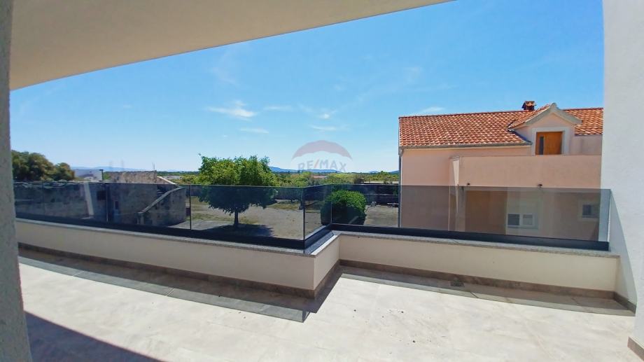 Kuća ima ravni krov na kojem su izvedene instalacije za struju i vodu. Budući vlasnik može dodatno iskoristiti krov kao prostranu terasu s predivnim pogledom na more i okolne otoke Prvić, Zlarin i Tijat. Na toj terasi, koja pruža dodatnih 80 m², potrebno je ugraditi spiralne stepenice koje vode s kata na krov.