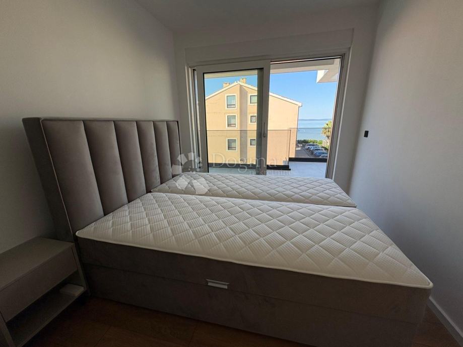 Ovaj ekskluzivni stan u prizemlju nove stambene zgrade nudi 147,76 m² modernog prostora i 124,67 m² privatnog vrta s bazenom. Luksuzno namješten i opremljen vrhunskim materijalima, savršen je za one koji traže komfor uz more.