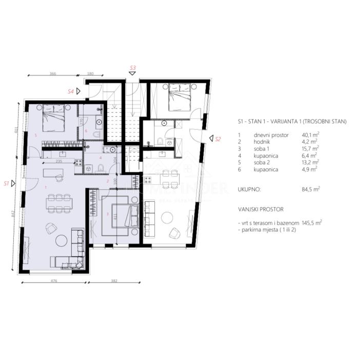 Stambena površina: 84,5 m²