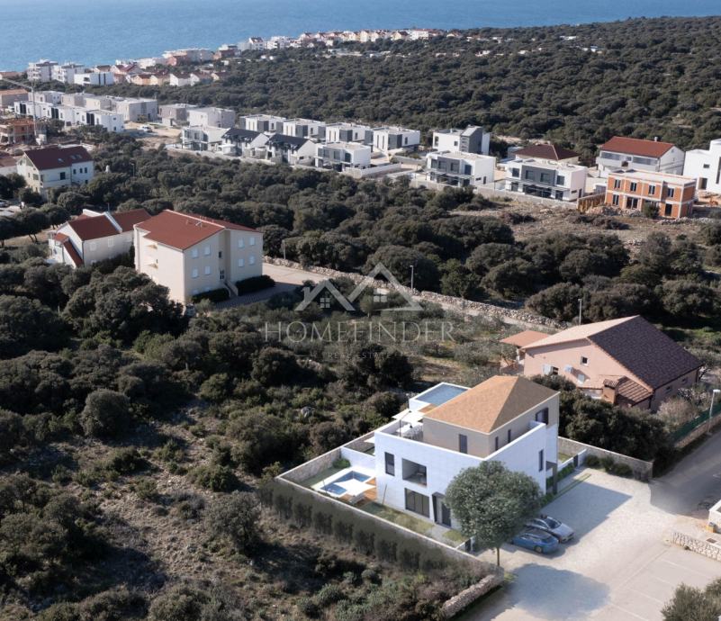 PRODAJA – Luksuzni stan u prizemlju s privatnim bazenom, vrtom i pogledom na more – Mandre (otok Pag)