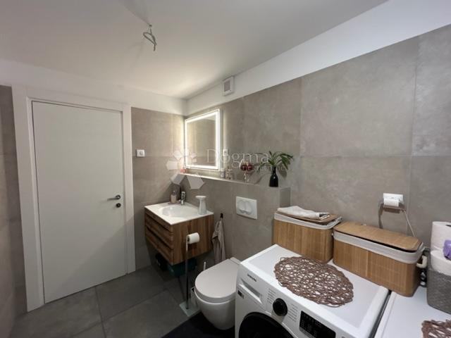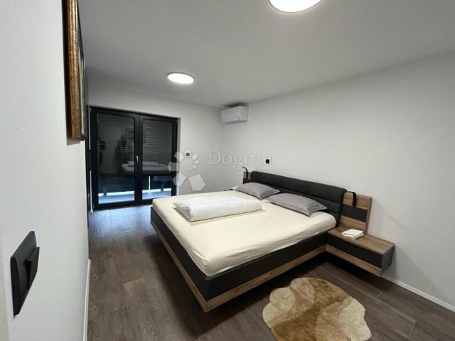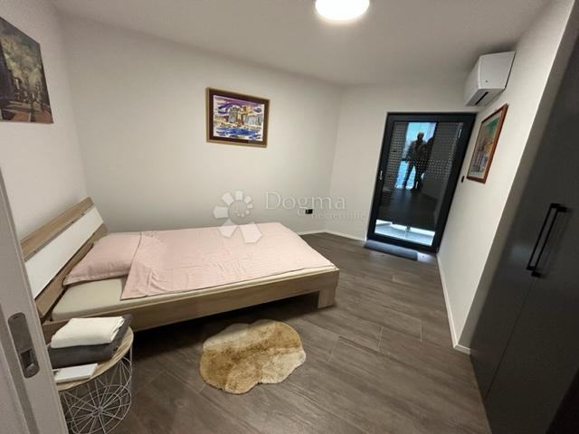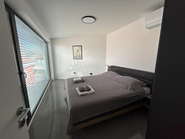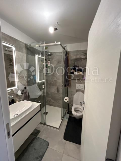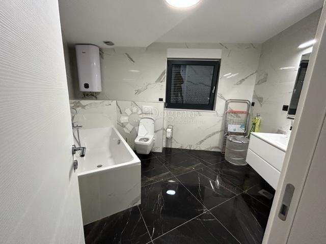 Nekretnina je opremljena vrhunskim materijalima, od troslojne Schuco stolarije, protuprovalnih i protupožarnih vrata, ventilirane fasade s više pora 15 cm, balkonske ograde od zatamnjenog kaljenog stakla koje omogućuje nesmetan protok svjetla i pogled. okoliša. Stan ima podno grijanje, osim u spavaćim sobama. Imamo i 4 klime, u svakoj sobi, a posebno u dnevnoj sobi. Prostor je organiziran u komforan dnevni boravak s izlazom na prostrani balkon južne orijentacije s pogledom na more, tri spavaće sobe i dvije kupaonice, jedna s kadom, a druga s tuš kabinom, koje pružaju privatnost i udobnost. Električne rolete, te aluminijske grilje na kliznoj balkonskoj stijeni, koje se mogu namjestiti da propuštaju dnevno svjetlo.