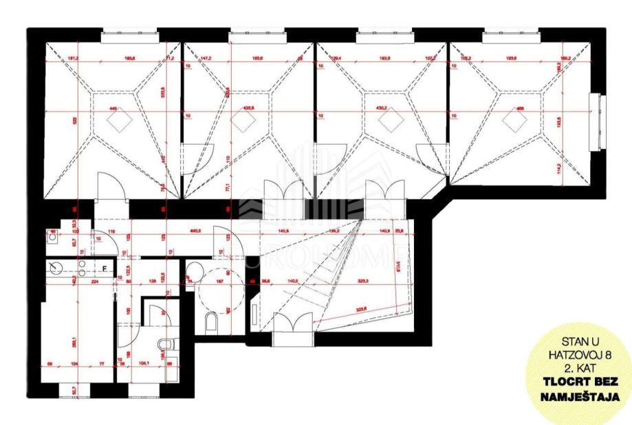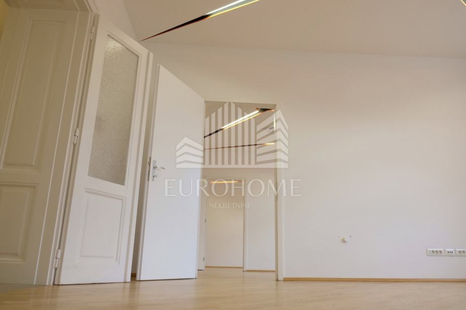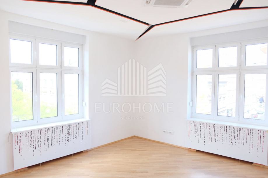 Stan se sastoji od 5 + prostorija /soba koje gledaju na Petrinjsku i Hatzovu ulicu, sobe su svjetle s velikim alu prozorima. Stan je ima izvrsnu zvučnu izolaciju, 2 sanitarna čvora, 1 toalet prilagođen za invalide te kupaonicu s velikim walk in tušom, garderobu, čajnu kuhinju, ostavu., hrastov parket.