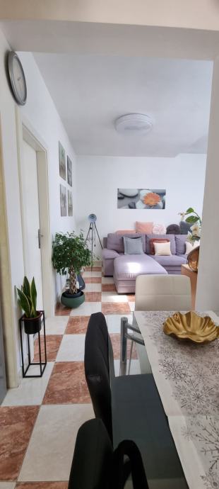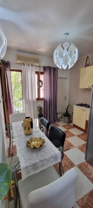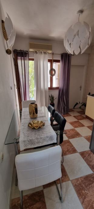 A5 Stan od 80 m2. Dvije spavaće sobe svaka sa svojom kupatilom,.Dnevna soba, blagovaonica i kuhinja, te veliko predsoblje. Lođa i dva balkona s lijepim pogledom. Cijena 1000eura s uključenim troškovima režije,... Jedna najamnina unaprijed kao polog...!